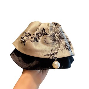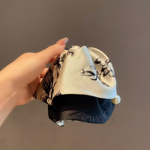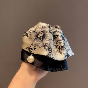 新款头饰国潮水墨画印花裙摆马尾夹高级感缎面抓夹半扎发夹发饰品