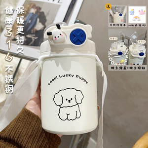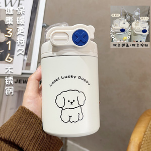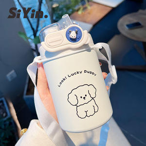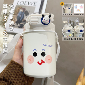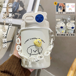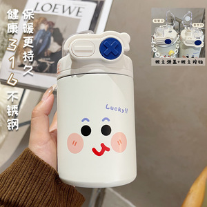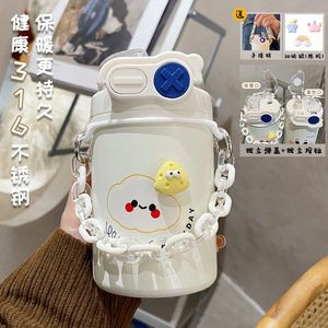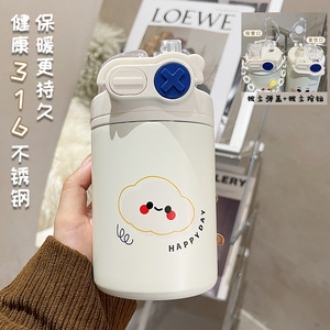 保温杯女生双饮口可爱卡通咖啡杯带吸管316不锈钢水杯高颜值杯子