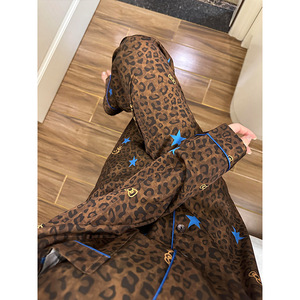 法式高级感豹纹Kitty印花睡衣女2025夏季大码长袖长裤家居服套装