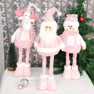 圣诞粉色亮片伸缩公仔橱窗圣诞老人雪人麋鹿摆件圣诞节装饰品