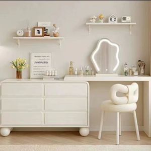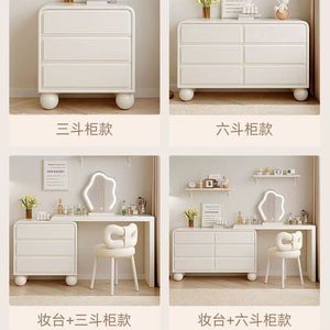 轻奢奶油风实木梳妆台斗柜一体收纳柜现代简约可伸缩转角化妆桌子