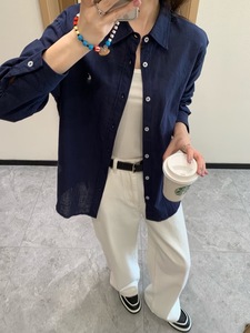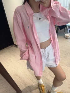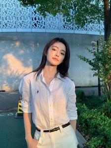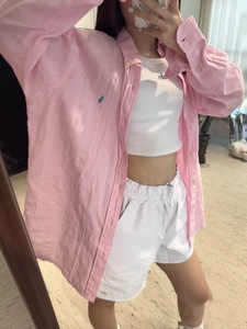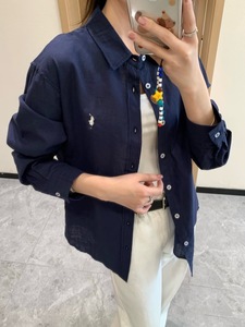 现货RL拉夫小马标刺绣老钱风亚麻休闲衬衫上衣纽扣POLO领百搭长袖