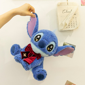 可爱蝴蝶结史迪仔毛绒玩具公仔兔毛领结史迪奇玩偶抱枕批发外贸