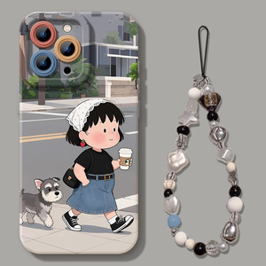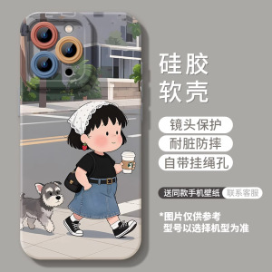 逛街小丸子苹果16promax手机壳iphone15带挂绳13可爱12高级14软壳