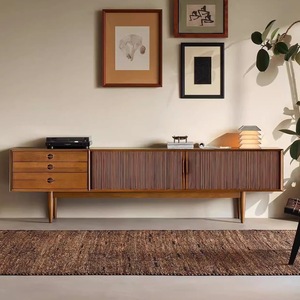 实木电视柜黑色复古风中国风储物柜小户型北欧简约电视机柜中古风