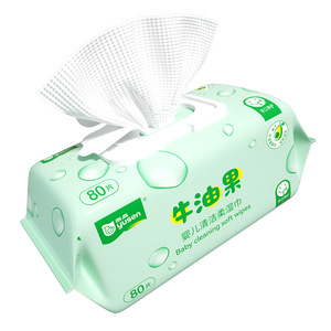 雨森湿巾牛油果系列手口湿巾家庭特惠装柔湿巾80片宝宝超大包实惠