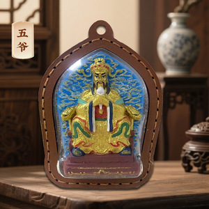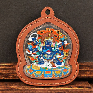 六臂绿度母五爷扎基拉姆黄财神皮壳嘎乌盒立体手绘擦擦唐卡吊坠