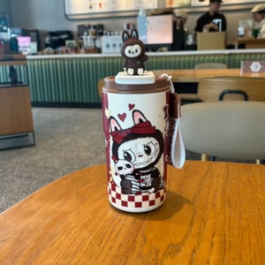 新款卡通316不锈钢保温杯咖啡杯高颜值水杯提绳车载杯便携吸管杯