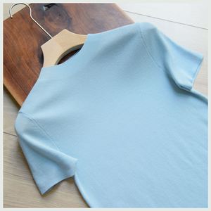 BIELLA德国扬子精纺120S 半高领 四平针 春夏短袖T恤全羊毛套头衫