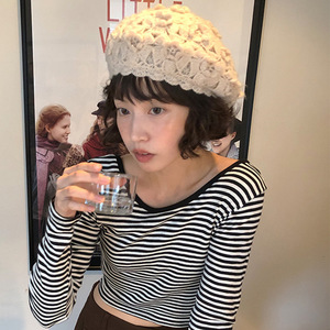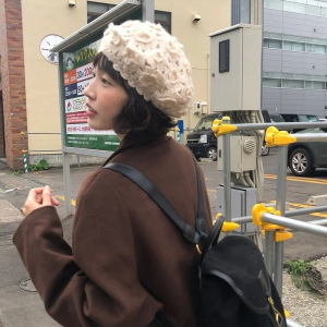 25ss韩国秋冬手工立体钩花厚实针织帽复古街头文艺贝雷帽画家帽女