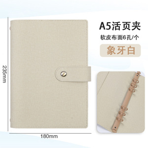 A5象牙白色软皮布面6孔活页夹-仅外壳