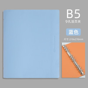 B5蓝色-9孔PU仿皮活页夹-仅外壳