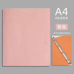 A4粉色-4孔PU仿皮活页夹-仅外壳