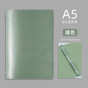 A5绿色6孔莫兰迪仿皮活页夹-仅外壳