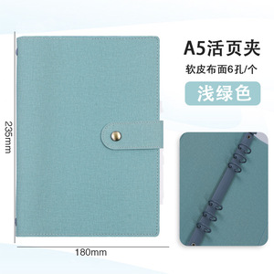A5浅绿色软皮布面6孔活页夹-仅外壳