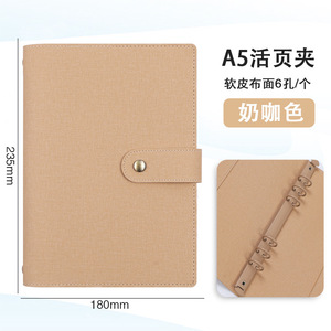A5奶咖色软皮布面6孔活页夹-仅外壳