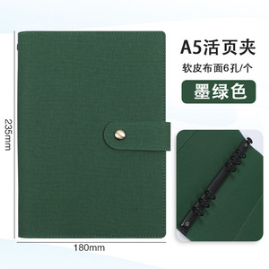 A5墨绿色软皮布面6孔活页夹-仅外壳