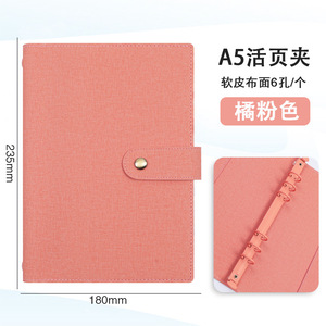 A5橘粉色软皮布面6孔活页夹-仅外壳