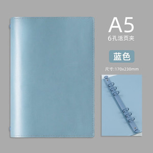 A5蓝色-6孔莫兰迪仿皮活页夹-仅外壳