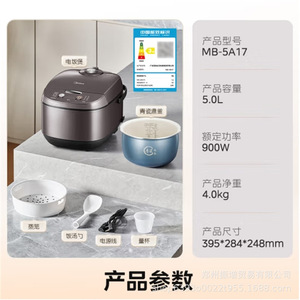 美的电饭煲家用5L大容量柴火饭多功能智能预约MB-5A17