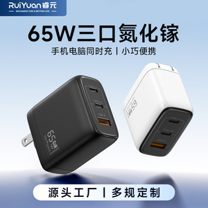 PD65三口氮化镓充电头65W多口快充充电头适用苹果手机电脑充电器