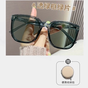 LZH8008折叠透绿框绿片-防晒墨镜【便携圆包】