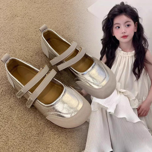 女童小皮鞋2025新款公主风软底单鞋夏季配裙子银色豆豆鞋儿童鞋子