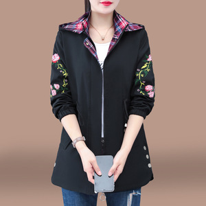 中长款风衣外套女春秋2025新款中年妈妈休闲时尚连帽收腰显瘦上衣