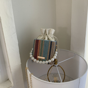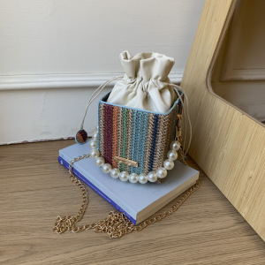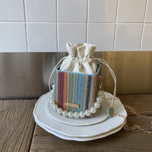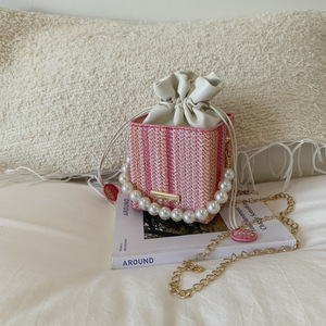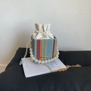 珍珠手提包女2025新款潮小方包时尚链条单肩包夏季网红编织水桶包