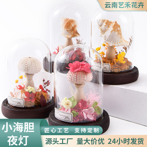 玻璃罩圆柱小海胆夜灯永生花干花礼物摆件装饰节日送小孩朋友批发