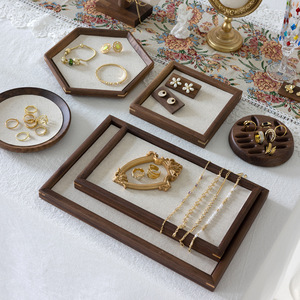 胡桃木首饰托盘珠宝戒指耳环手串陈列展示托盘收纳饰品拍照道具