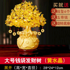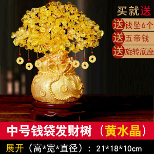 黄水晶摇钱发财树招财摆件酒柜装饰家居客厅乔迁新年新居开业礼品