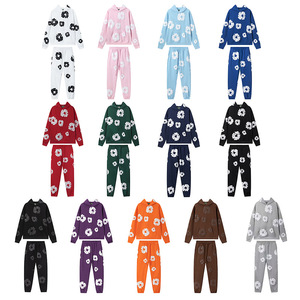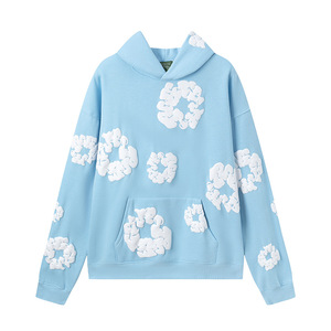 发泡印花美式情侣卫衣帽衫卫裤休闲套装潮男ins
