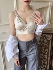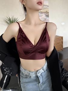 抖音8512深V缎面无痕美背内衣小胸聚拢内衣固定一体胸垫大码文胸