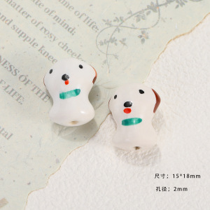 手绘动物陶瓷珠子小狗小熊动物散珠 diy饰品配件手串配饰串珠材料