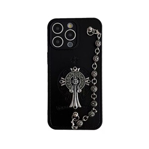 克心皮质黑色立体适用苹果16promax手机壳十字架iphone15男女款