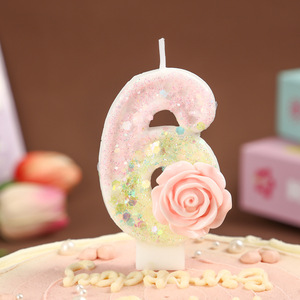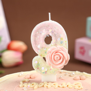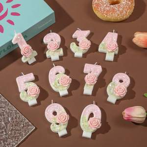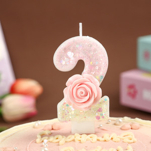 新品女款梦幻粉玫瑰创意数字蜡烛生日周岁蛋糕装饰烘培亚马逊专供