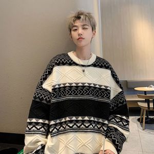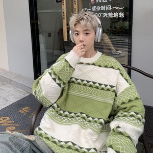 牛油果绿条纹拼接设计感毛衣外穿秋冬季小众日系慵懒风复古针织衫