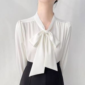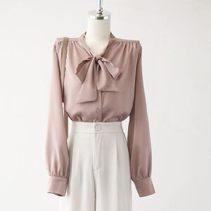 绸缎衬衫蝴蝶结上衣长袖工装衬衣四季款百搭打底衫胖妹妹大码女装