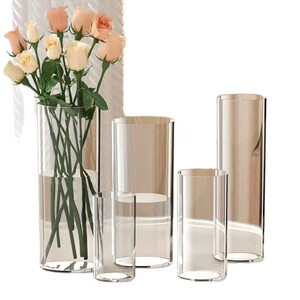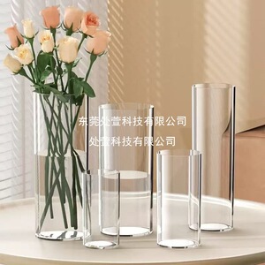 透明亚克力直筒花瓶轻奢醒花桶深水富贵竹现代客厅摆件插花桶醒花