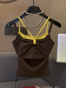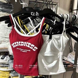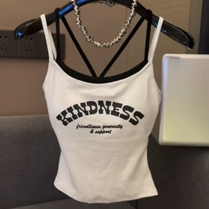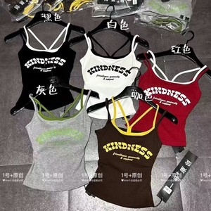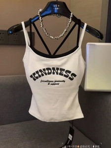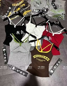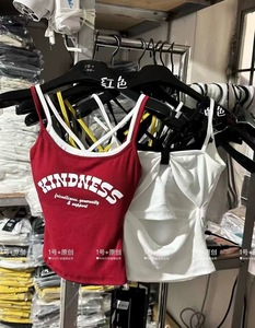 辣妹露腰夏季穿搭字母印花自带胸垫吊带背心女修身显瘦上衣撞色