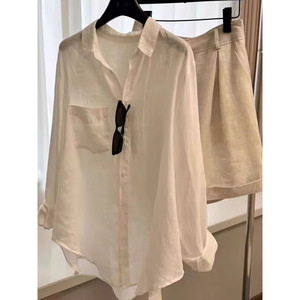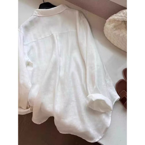 亚麻老钱风衬衫女秋季薄款宽松显瘦高端棉麻衬衣长袖上衣
