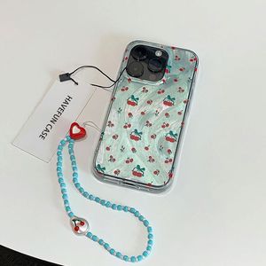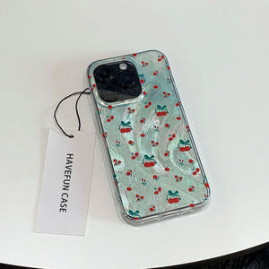 ins薄荷绿樱桃适用苹果16手机壳羽纱iphone15promax保护套14手链