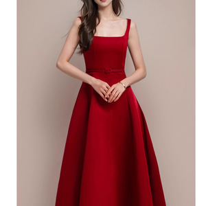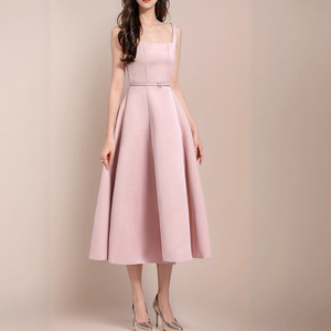 粉色吊带连衣裙女夏法式生日订婚礼服收腰长裙韩系千金公主裙2100