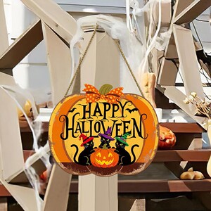 木质工艺品万圣节南瓜挂牌卧室客厅墙面装饰万圣派对装饰门牌门挂