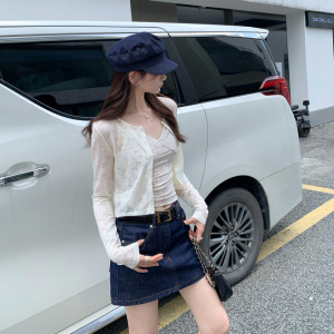 特价批发法式独特蕾丝长袖开衫T恤女春夏配吊带高级感防晒外套上