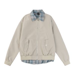 春秋外穿小众格纹翻领假两件夹克男款复古街头宽松情侣装夹克男