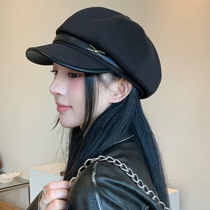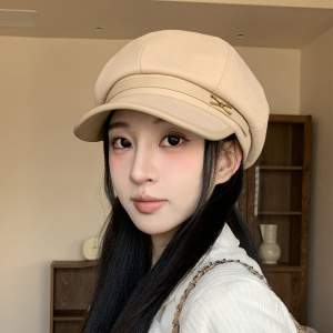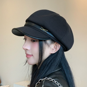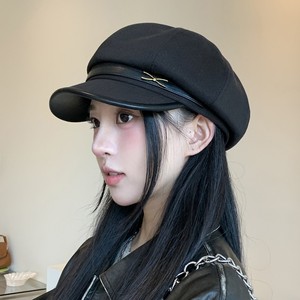 英伦风复古包边皮带扣八角帽子女秋冬新款文艺百搭贝雷帽画家帽潮