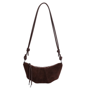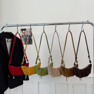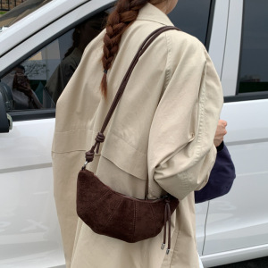 秋冬麂皮绒复古磨砂腋下小包包女式2025新款牛角包百搭斜挎饺子包