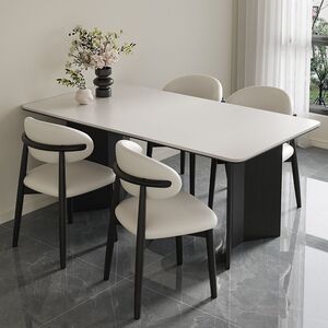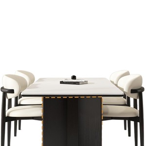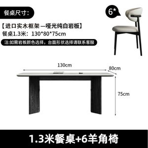 意式实木岩板餐桌椅组合小户型家用吃饭桌子现代简约长方形西餐桌